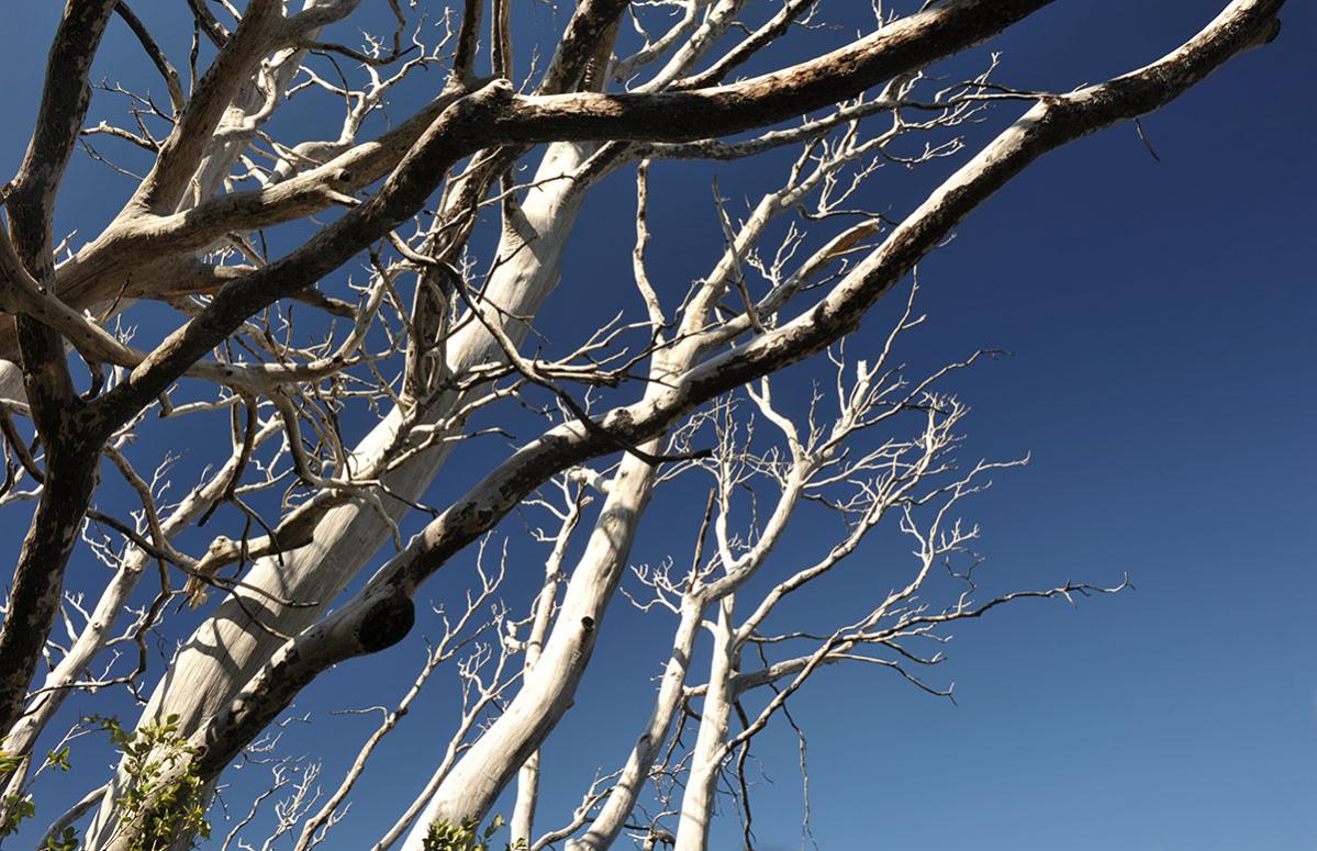 It is a nice photo, and I like the contrasts between the branches where some seem light and smooth and others seem dark and rough, and how the blue sky is a shade darker near the top. But I think it just needs something more. I feel like I should be looking for some hidden object or animal among the branches. Maybe if you had cut out that last couple of branches on the right and opened up the sky a little more it might have a stronger or more distinguished appeal.