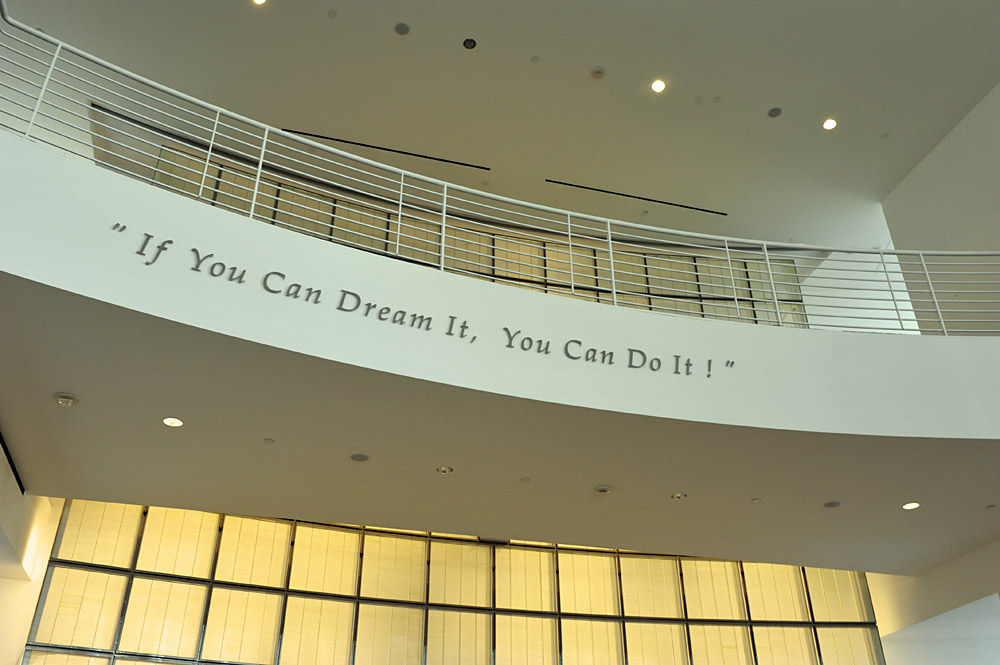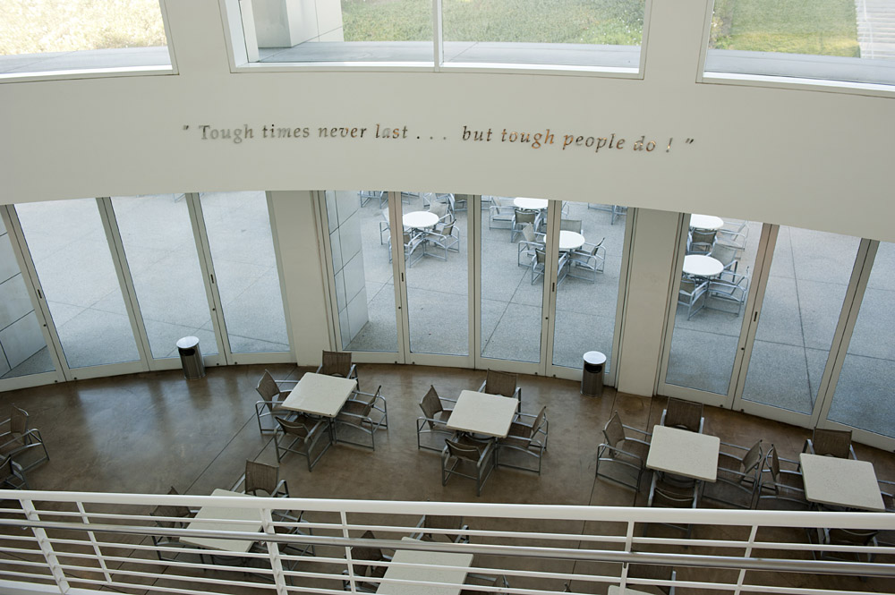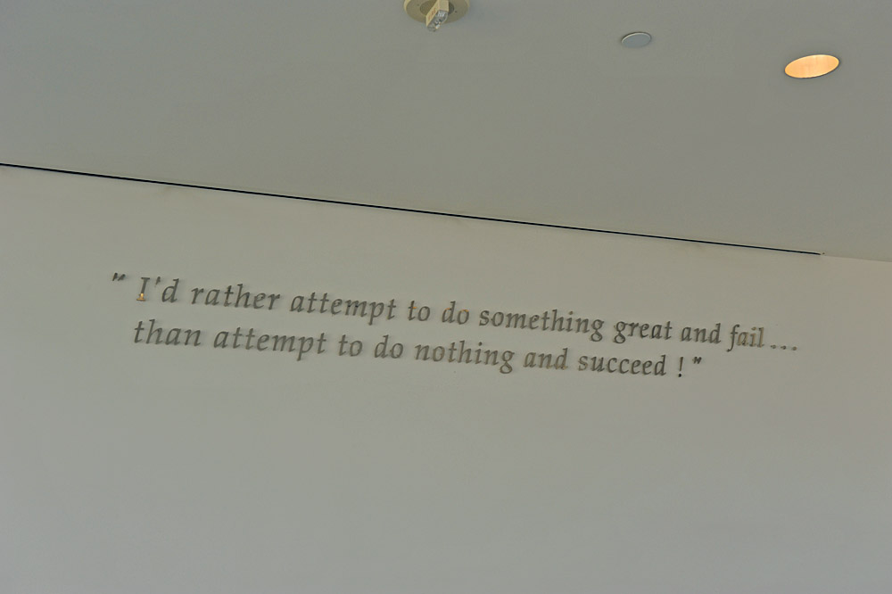 It wasn't as crowded as I expected and there were many signs of financial stress around campus, but it's still an architectural marvel. I really like the contemporary styling, and find the inspirational messages, well, inspirational.